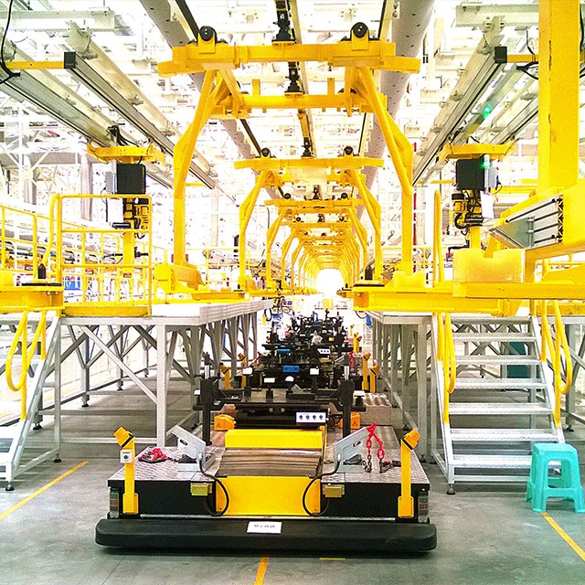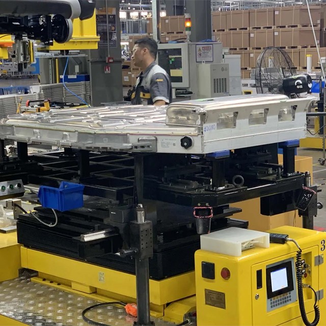 近年來(lái)隨著新能源汽車的興起,很多主機(jī)廠需要同時(shí)生產(chǎn)燃油車和新能源車,對(duì)裝配線柔性需求大大提高。新松舉升移動(dòng)機(jī)器人既可以實(shí)現(xiàn)電池包與前后懸整體舉升合裝,也可以采用單舉升與雙舉升結(jié)合的方式實(shí)現(xiàn)電池包與前后懸的分體式合裝。另外為了適應(yīng)用戶的多樣化需求,新松推出了重載舉升型移動(dòng)機(jī)器人可以實(shí)現(xiàn)承載式車身與非承載式車身的混線生產(chǎn)。憑借著多年汽車合裝經(jīng)驗(yàn),我們可以根據(jù)客戶的裝配工藝定制解決方案。